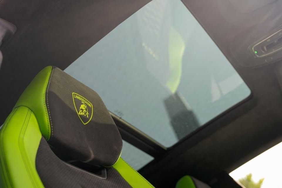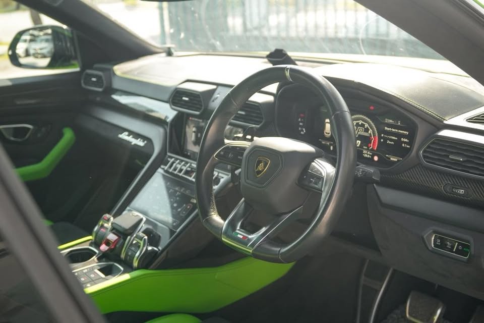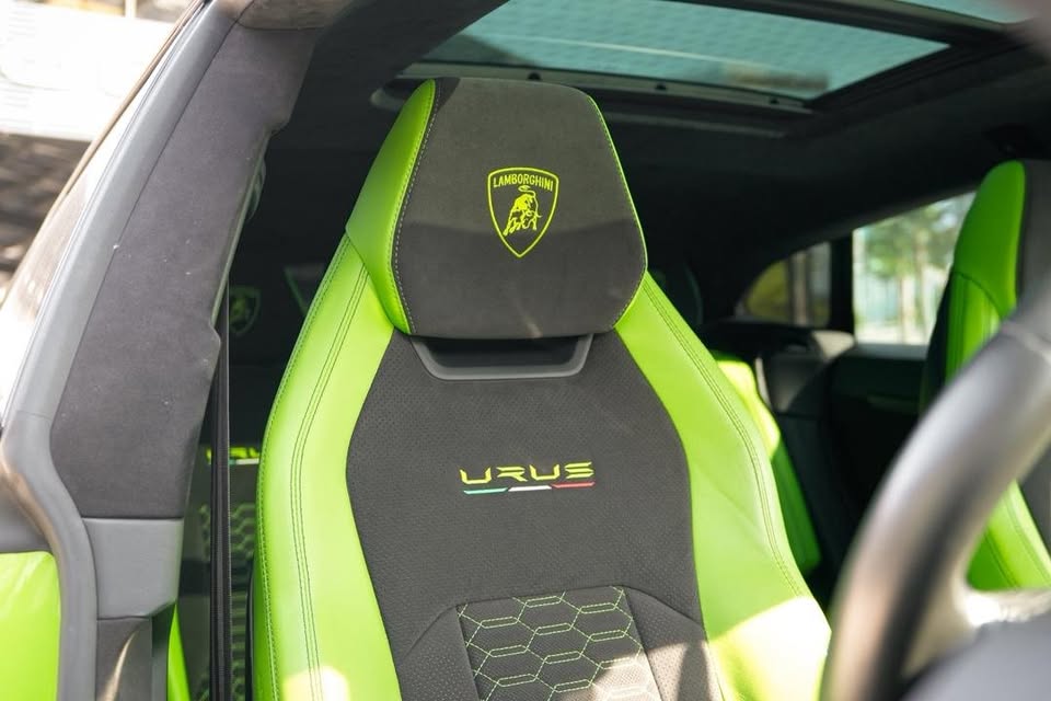 ✅Pearl Capsule Coated Rims with Green Caliper ✅Carbon Ceramic Brake ✅Urus Embroidered Monogram On All Seats ✅Ventilation & Massage Seats ✅360 surround camera ✅Full Carbon Interior ✅Panaromic Roof ✅Full electric seats ✅Multifunction steering ✅B&O 4D Advanced Sound System ✅Soft Close Doors ✅Two Tone Leather Interior with Alcantara