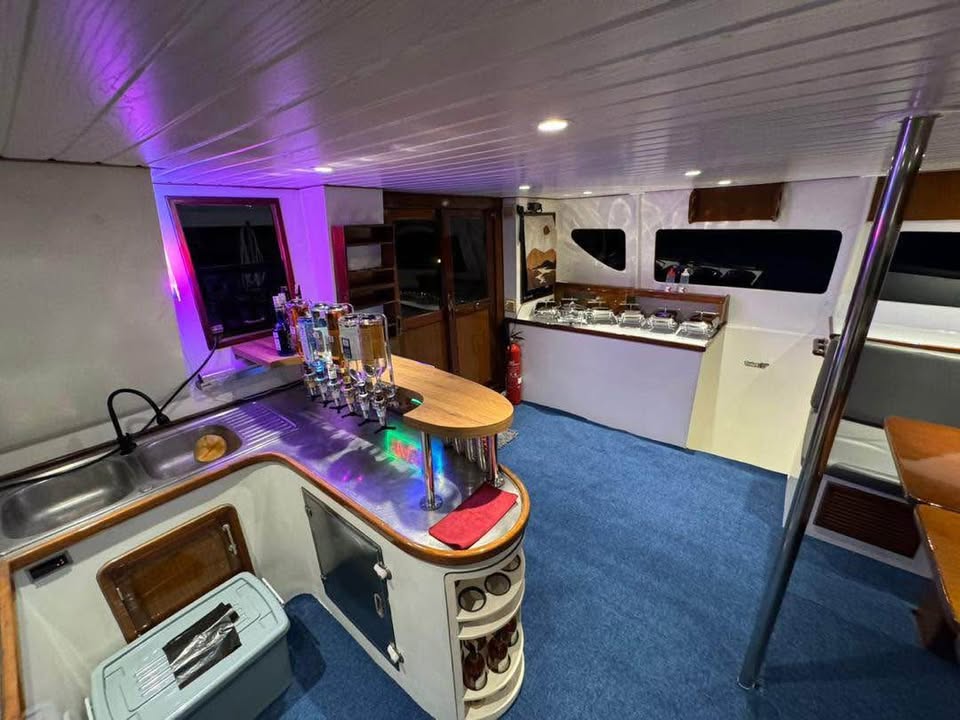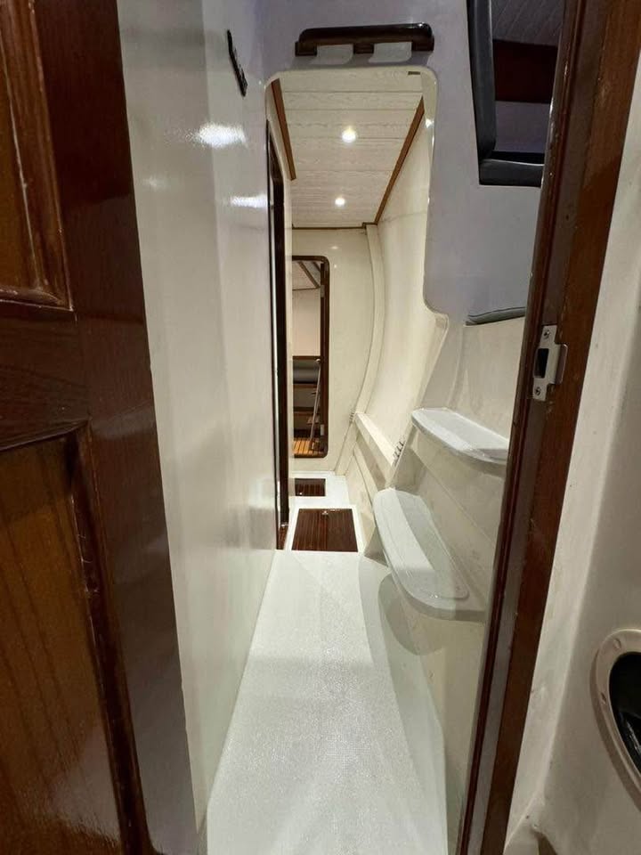 16. 4 cabins, 1 bathroom, saloon, kitchen, bar, full air condition inside. large flybridge.