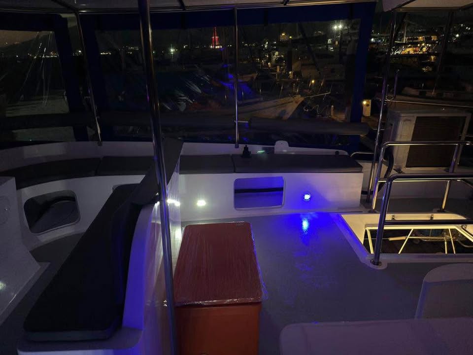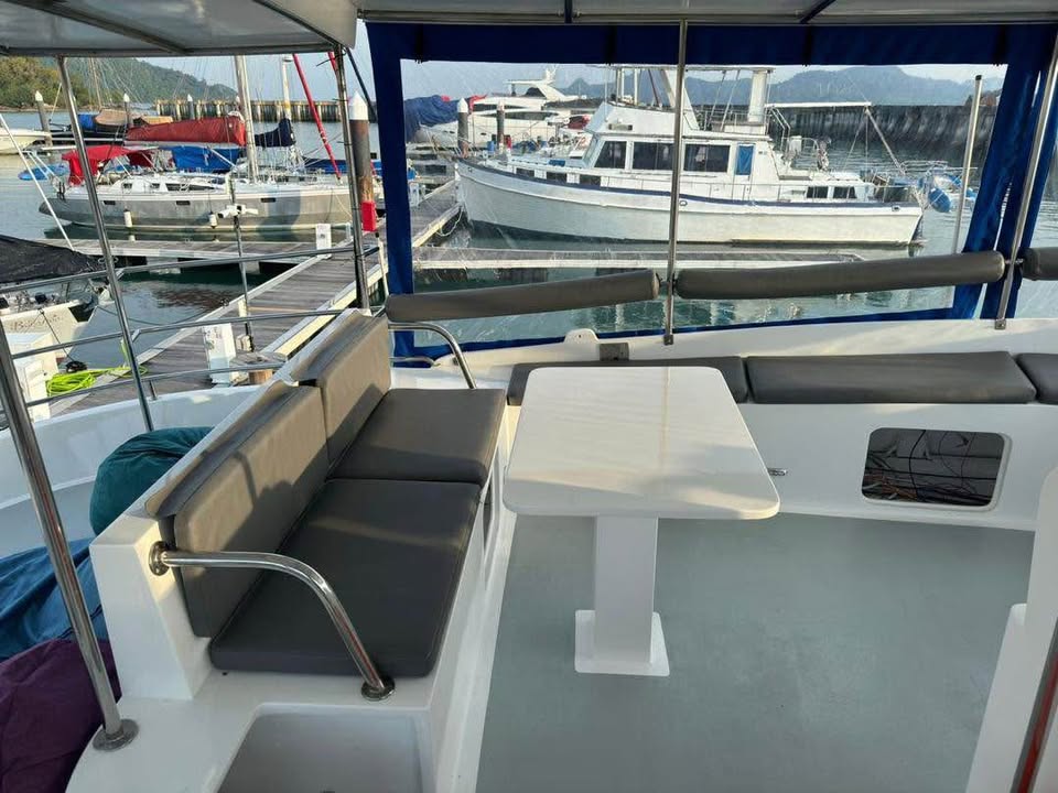15. Well equipped: GPS, VHF, AlS, fridge, freezer, microwave, bar, BBQ, bimini, hardtop, stereo music, trempoline and many extras.